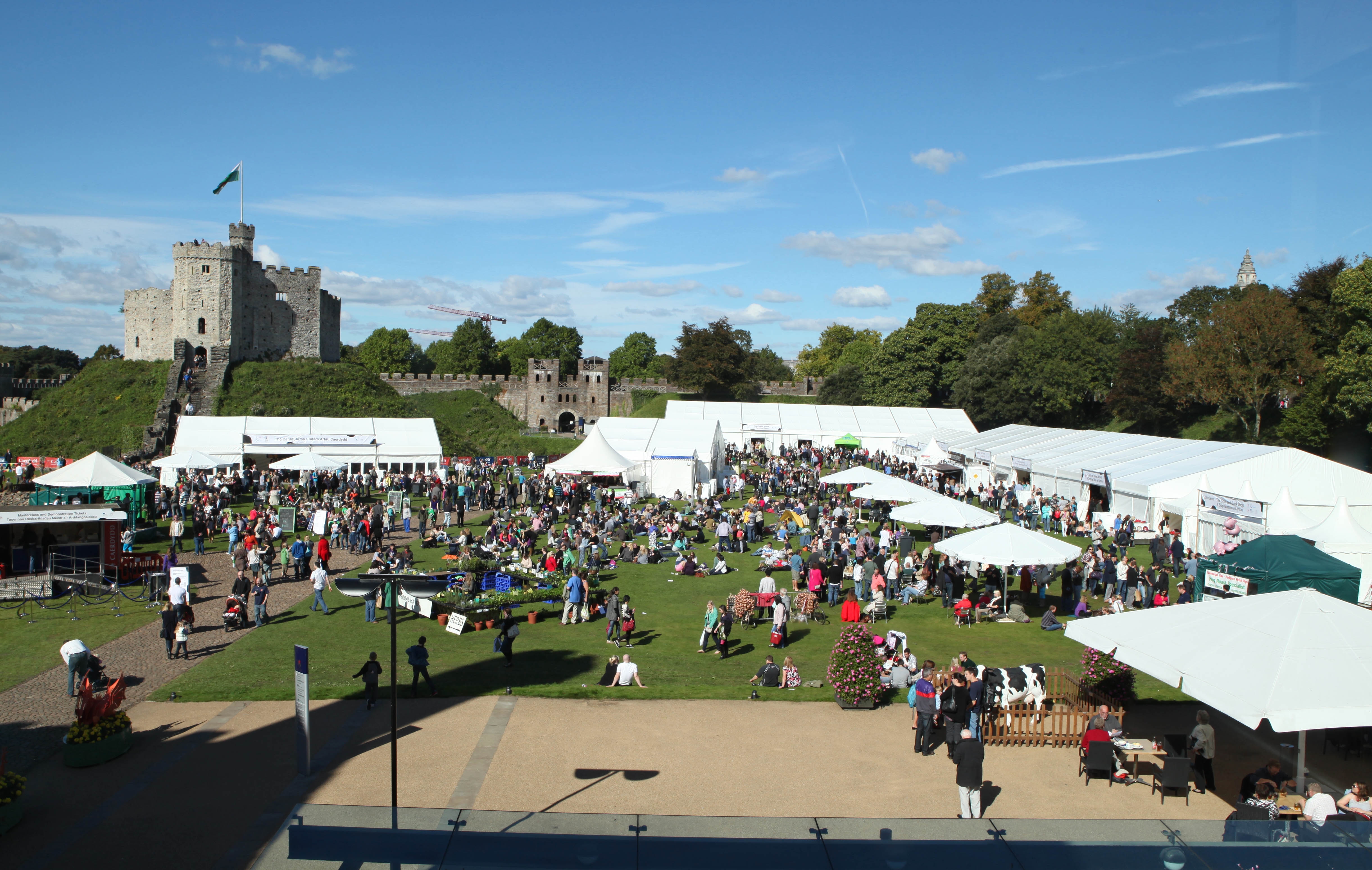The crowds and vendors at the Great Cheese British Festival. Credit: Visit Wales.