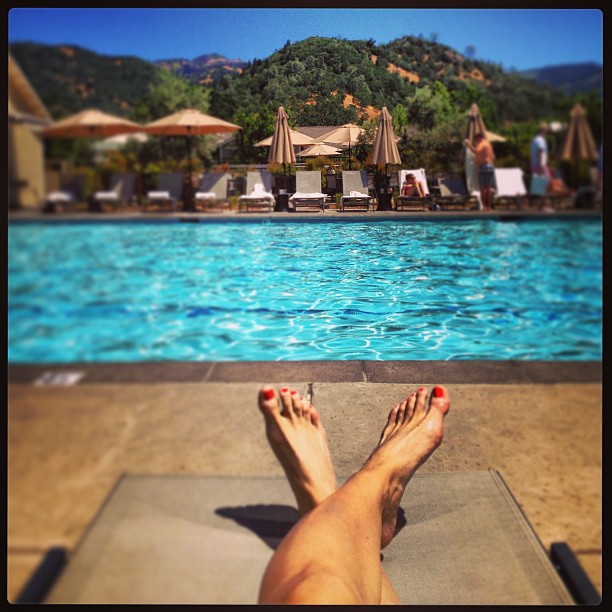 Lounging pool and mountainside at Solage Calistoga.