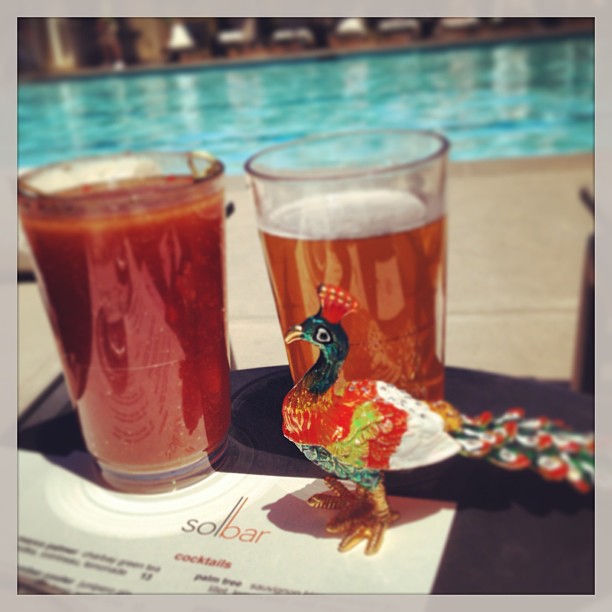 The #opulentpeacock combating the Indian summer heat with poolside cocktails from Solbar.