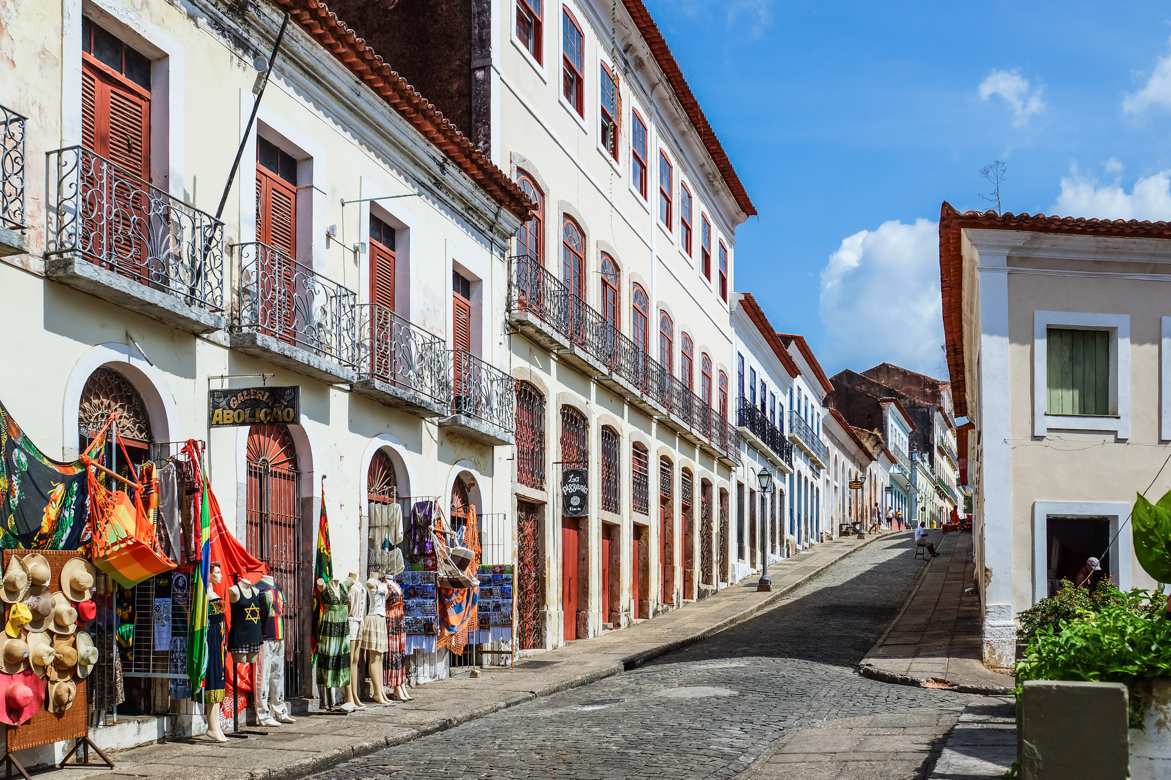 Little shops line this street in São Luis.