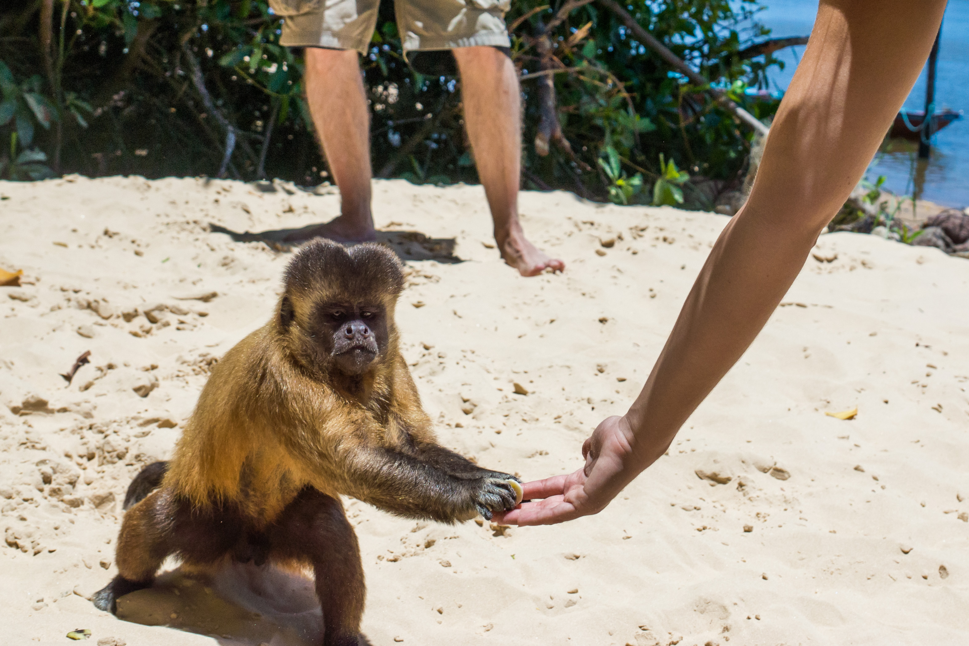 Your first stop en route should be a small, generator-run village with just a handful of visitors. Hang out where the silky sand meets the trees with a few banana slices in hand and watch the wild monkeys emerge. Your new besties need no time to warm up before snatching the banana from you. Once I got over my initial apprehension, I kept requesting more bananas!