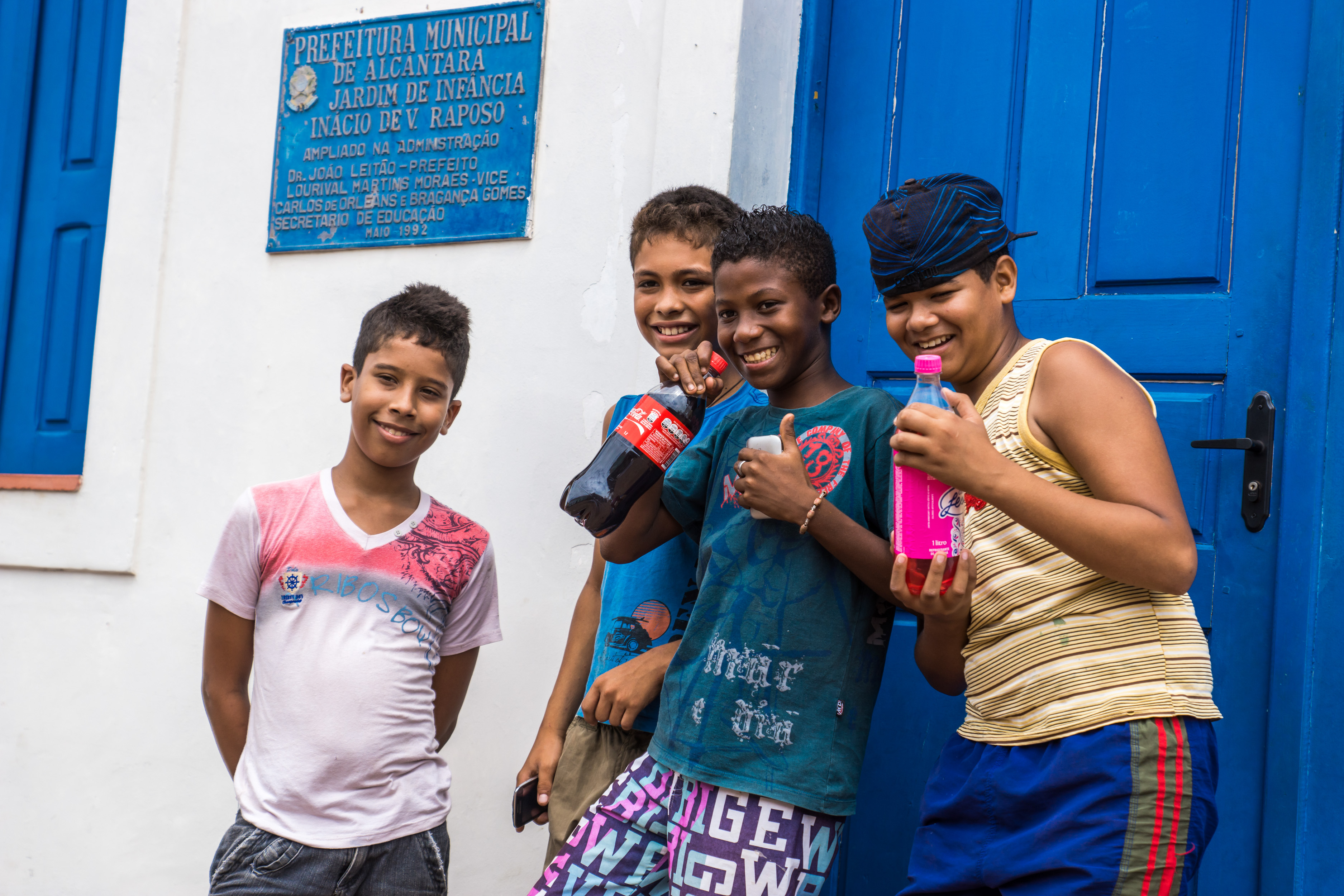Local kids drinking Coke and Guarana Jesus, a super sweet, bubblegum flavored soda exclusive to Maranhão.