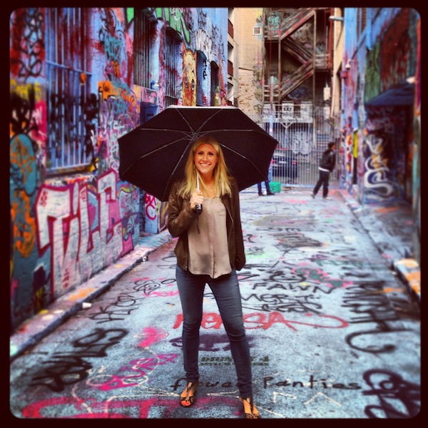 Michaela in one of Melbourne, Australia’s many laneways covered in street art.